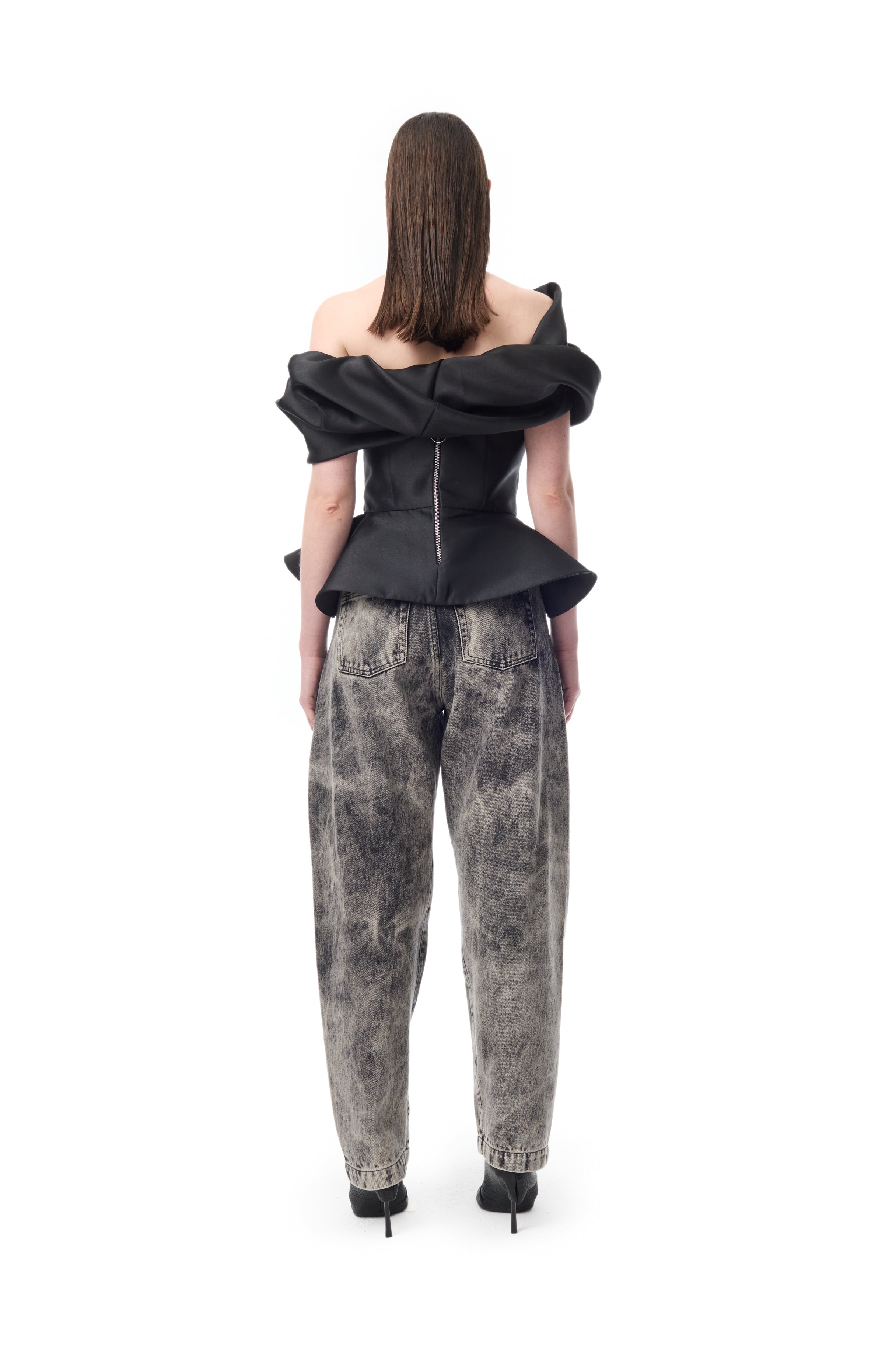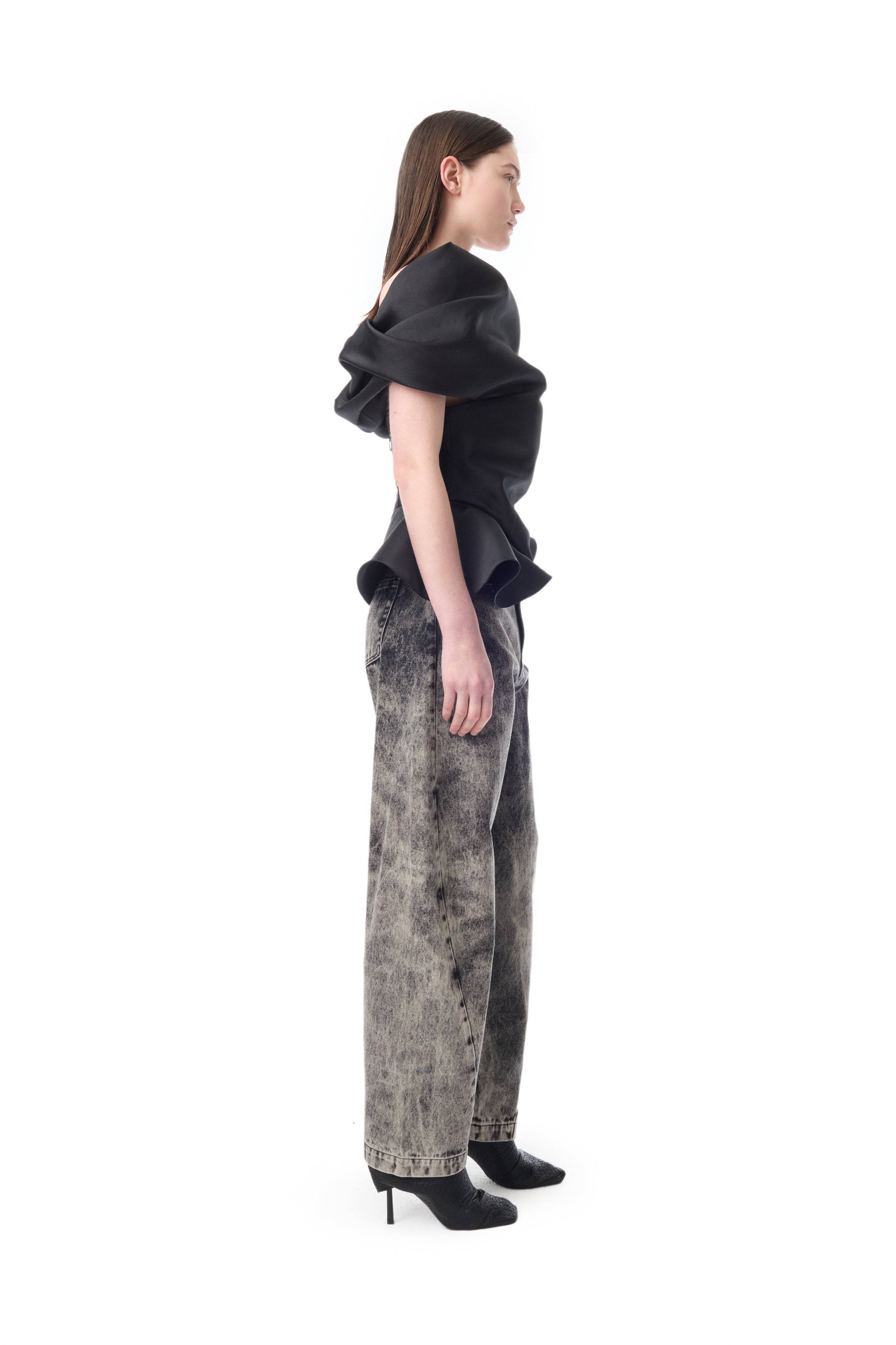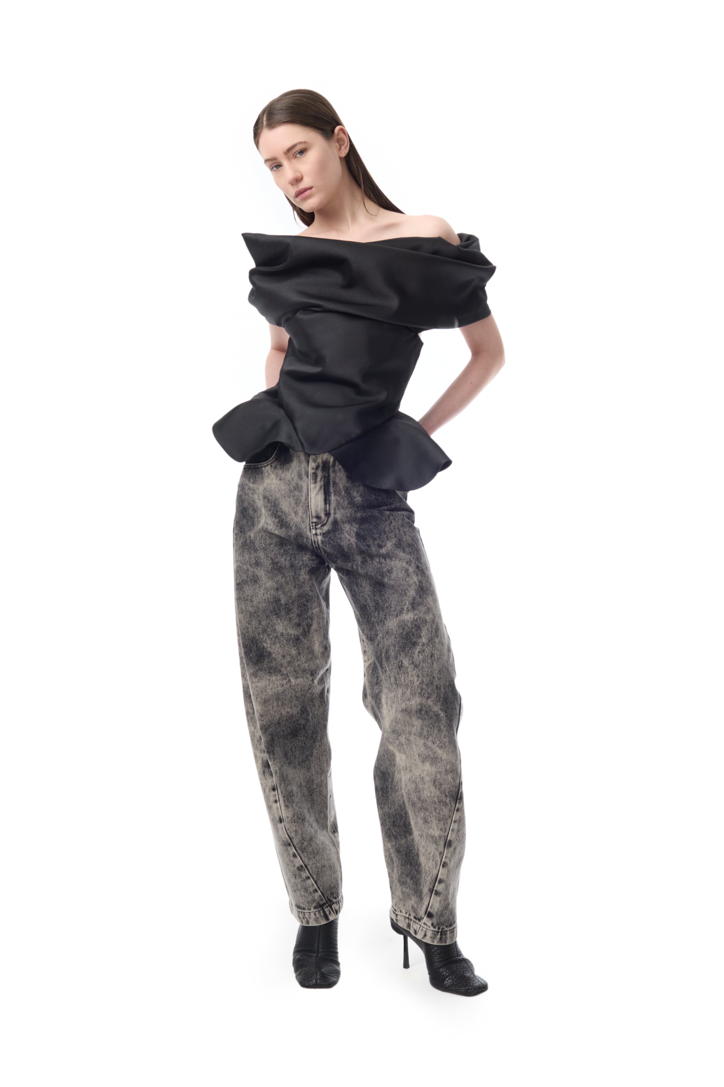 Make a statement with these grey acid wash barrel jeans, featuring a relaxed, curved-leg fit and vintage-inspired finish. Bold, comfortable, and effortlessly cool.