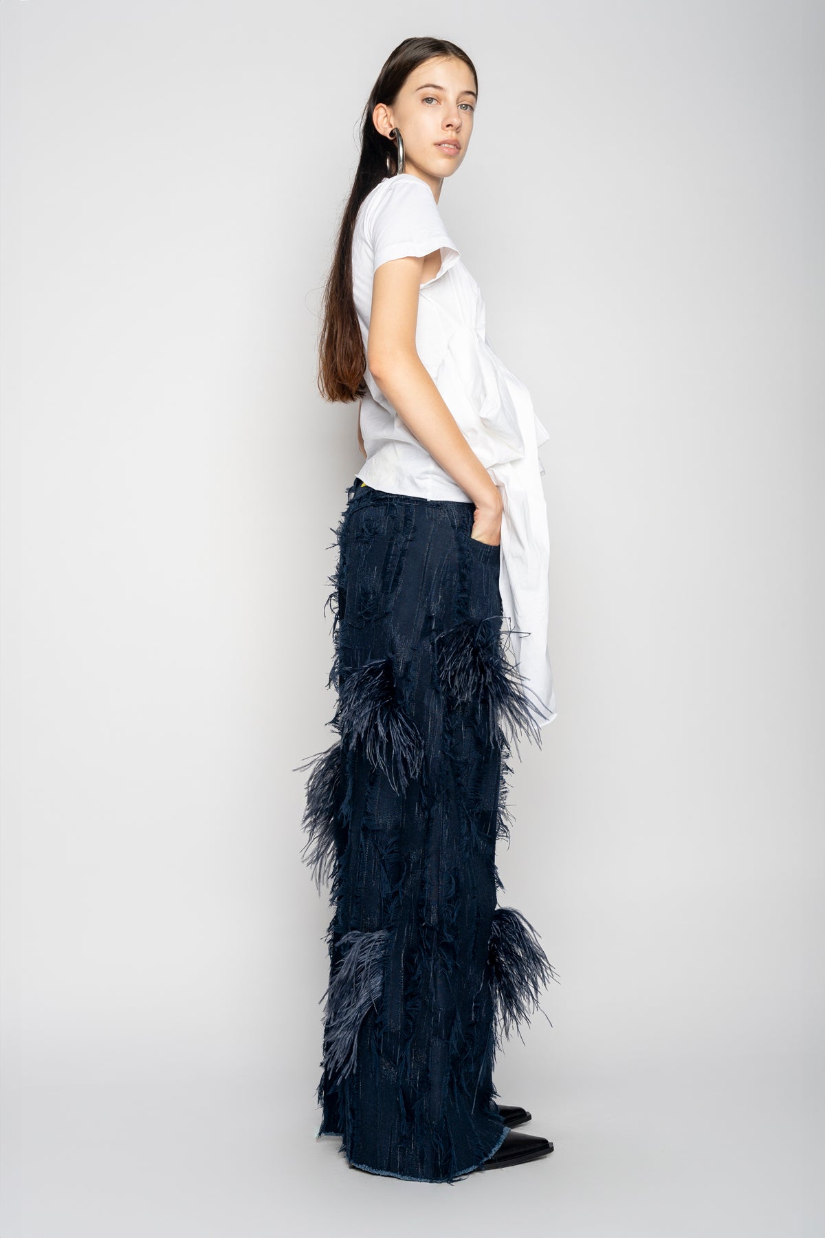 NAVY SHREDDED DENIM BOYFRIEND TROUSERS